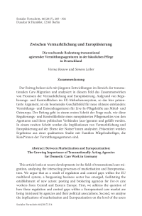 Die wachsende Bedeutung transnational agierender Vermittlungsagenturen in der häuslichen Pflege in DeutschlandSozialer Fortschritt, Vol. 66 (2017), Iss. 3–4 : pp. 285–302 | First published online: October 03, 2017