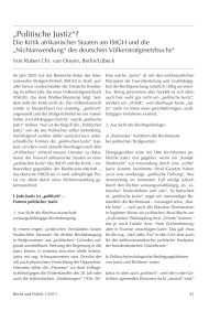 “Politische Justiz“? – Die Kritik afrikanischer Staaten am IStGH und die “Nichtanwendung“ des deutschen Völkerstrafgesetzbuchs