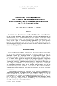 Schneller fertig, aber weniger Freizeit? – Eine Evaluation der Wirkungen der verkürzten Gymnasialschulzeit auf die außerschulischen Aktivitäten der Schülerinnen und Schüler