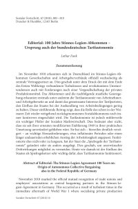 Editorial: 100 Jahre Stinnes-Legien-Abkommen – Ursprung auch der bundesdeutschen Tarifautonomie