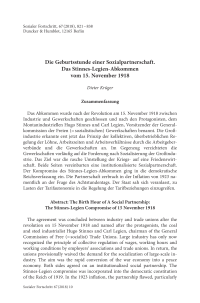 Die Geburtsstunde einer Sozialpartnerschaft. Das Stinnes-Legien-Abkommen vom 15. November 1918