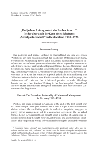 „Und jedem Anfang wohnt ein Zauber inne ... “ – leider aber auch der Kern eines Scheiterns: „Sozialpartnerschaft“ in Deutschland 1918–1928