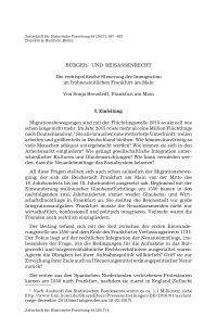 Bürger- und Beisassenrecht. Die rechtspolitische Steuerung der Immigration im frühneuzeitlichen Frankfurt am Main
