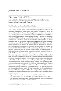 Fritz Hesse (1881 – 1973) – Ein liberaler Bürgermeister der Weimarer Republik holt das Bauhaus nach Dessau