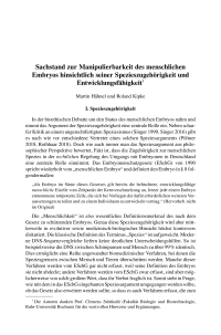 Spezieszugehörigkeit und Entwicklungspotential – Was impliziert ihre biotechnische Manipulierbarkeit für das Recht des Embryonenschutzes?