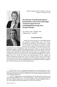 Die deutsche Gründerlandschaft im Energiesektor und ressourcenbedingte Voraussetzungen für eine Gründungsfinanzierung eines Energie-Startups