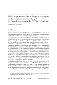 Mehr Europa? Kriterien für eine Kompetenzübertragung auf die Europäische Union am Beispiel der Gesundheitspolitik und der COVID 19-Pandemie