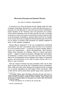 Monetarist, Keynesian and Quantity Theories