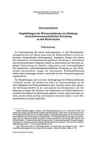 Empfehlungen des Wissenschaftsrats zur Stärkung wirtschaftswissenschaftlicher Forschung an den Hochschulen