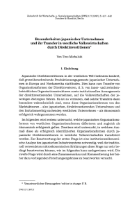 Besonderheiten japanischer Unternehmen und ihr Transfer in westliche Volkswirtschaften durch Direktinvestitionen