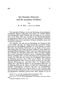 Der Deutsche Zollverein und die monetären Probleme