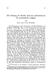 Die Ordnung der Berufe nach der Arbeitsschwere als systematische Aufgabe