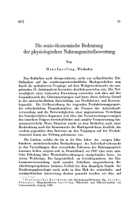 Die sozio-ökonomische Bedeutung der physiologischen Nahrungsmittelbewertung