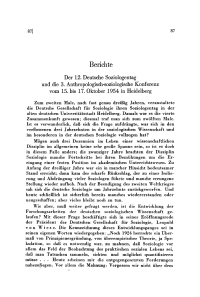 Der 12. Deutsche Soziologentag und die 3. Anthropologisch-soziologische Konferenz vom 15. bis 17. Oktober 1954 in Heidelberg