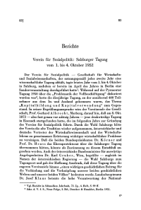 Verein für Sozialpolitik: Salzburger Tagung vom 1. bis 4. Oktober 1952