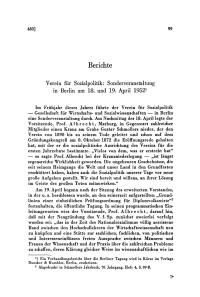 Verein für Sozialpolitik: Sonderveranstaltung in Berlin am 18. und 19. April 1952