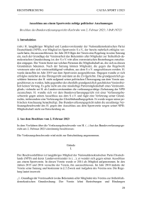 Beschluss des Bundesverfassungsgerichts Karlsruhe vom 2. Februar 2023; 1 BvR 187/21Causa Sport, Vol. 20 (2023), Iss. 1 : pp. 20–23 | First published online: May 12, 2023
