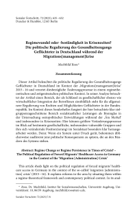 Regimewandel oder -beständigkeit in Krisenzeiten? Die politische Regulierung des Gesundheitszugangs Geflüchteter in Deutschland während der Migrations[management]krise