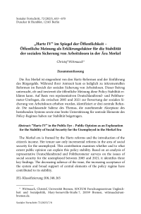 „Hartz IV“ im Spiegel der Öffentlichkeit – Öffentliche Meinung als Erklärungsfaktor für die Stabilität der sozialen Sicherung von Arbeitslosen in der Ära Merkel