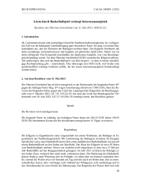 Beschluss des Obersten Gerichtshofs Wien vom 6. September 2023; 3Ob90/23sCausa Sport, Vol. 20 (2023), Iss. 2 : pp. 57–60 | First published online: November 06, 2023