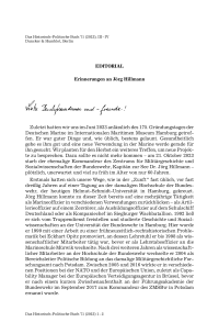 Erinnerungen an Jörg HillmannDas Historisch-Politische Buch (HPB), Vol. 71 (2023), Iss. 1–2 : pp. 1–2 | First published online: February 13, 2024