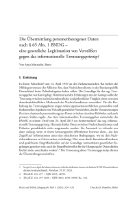 Die Übermittlung personenbezogener Daten nach § 65 Abs. 1 BNDG – eine gesetzliche Legitimation von Verstößen gegen das informationelle Trennungsprinzip?