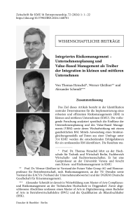 Integriertes Risikomanagement – Unternehmensplanung und Value-Based Management als Treiber der Integration in kleinen und mittleren Unternehmen