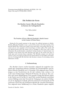 Die Moabiter Sonette Albrecht Haushofers im Kontext der GefängnislyrikLiteraturwissenschaftliches Jahrbuch, Vol. 65 (2024), Iss. 1 : pp. 135–152 | First published online: December 04, 2024