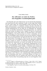 Das Affirmative ist nicht das Positive. Jean Hyppolites Geschichtsphilosophie