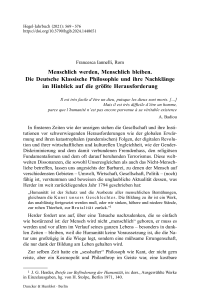 Menschlich werden, Menschlich bleiben. Die Deutsche Klassische Philosophie und ihre Nachklänge im Hinblick auf die größte Herausforderung
