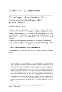 Gleichstellungspolitik auf Europäischer Ebene: Der sog. „Fahrplan für die Frauenrechte“ der EU-Kommission