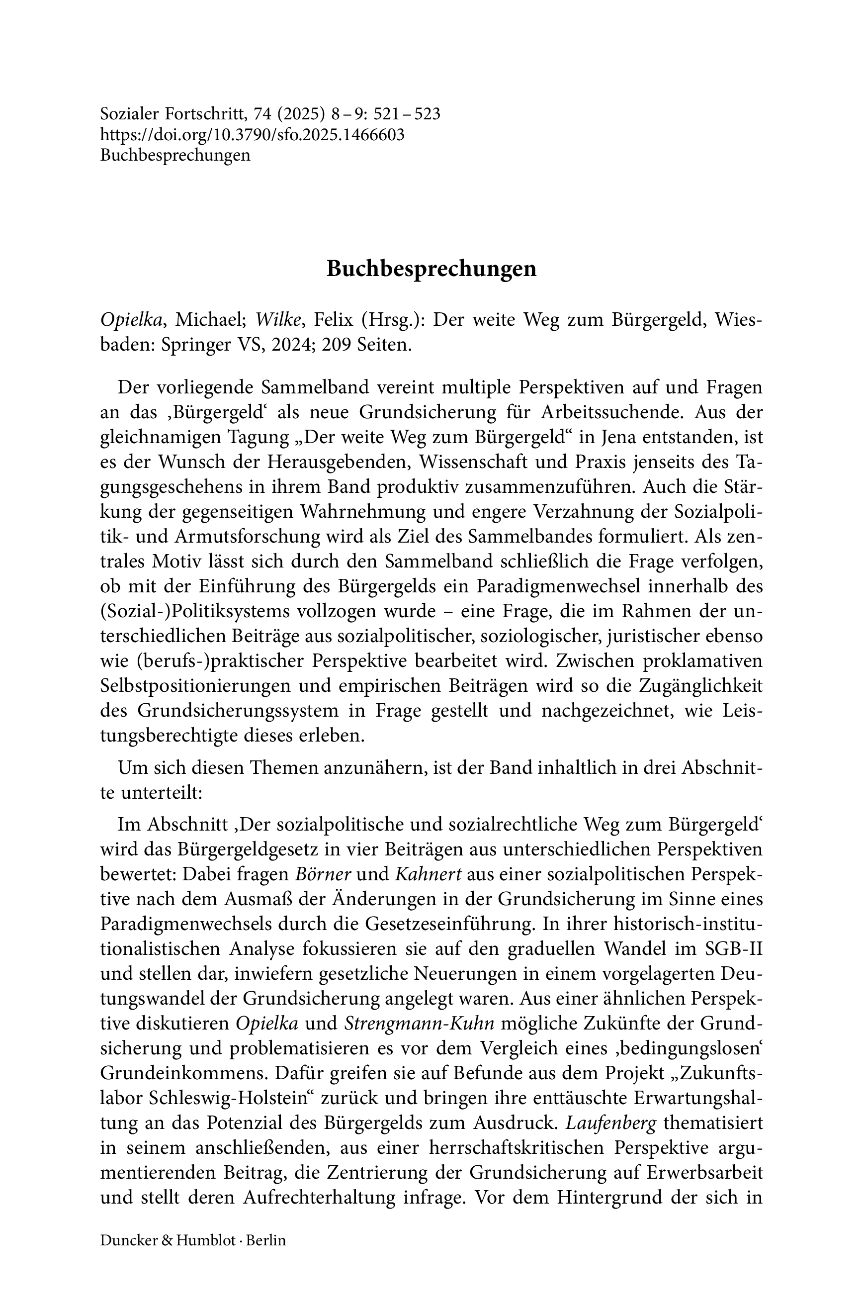 Sozialer Fortschritt, Vol. 74 (2025), Iss. 8–9 : pp. 521–523 | First published online: September 11, 2025