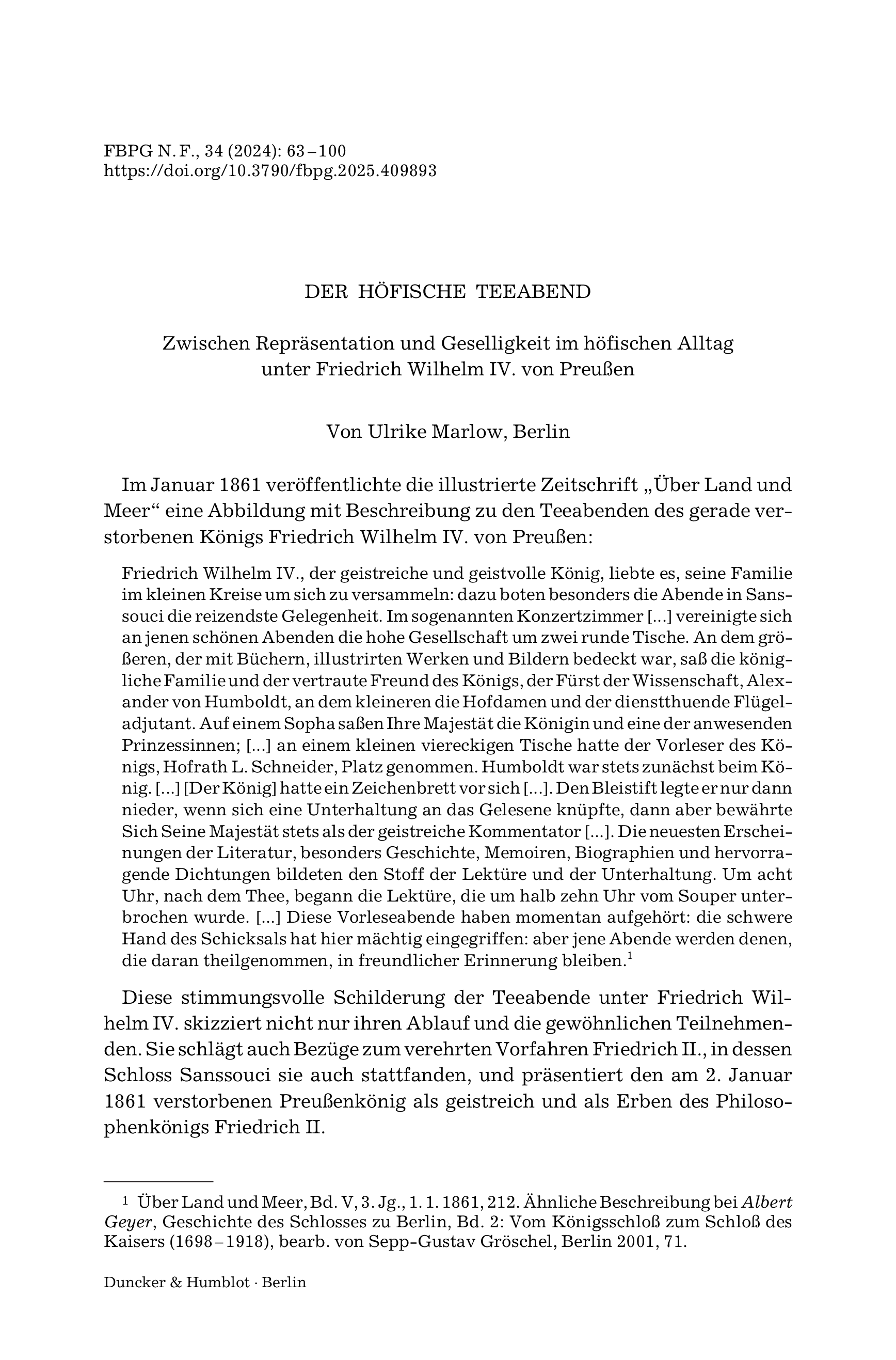 Zwischen Repräsentation und Geselligkeit im höfischen Alltag unter Friedrich Wilhelm IV. von PreußenForschungen zur Brandenburgischen und Preußischen Geschichte, Vol. 34 (2024), Iss. 1 : pp. 63–100 | First published online: October 01, 2025