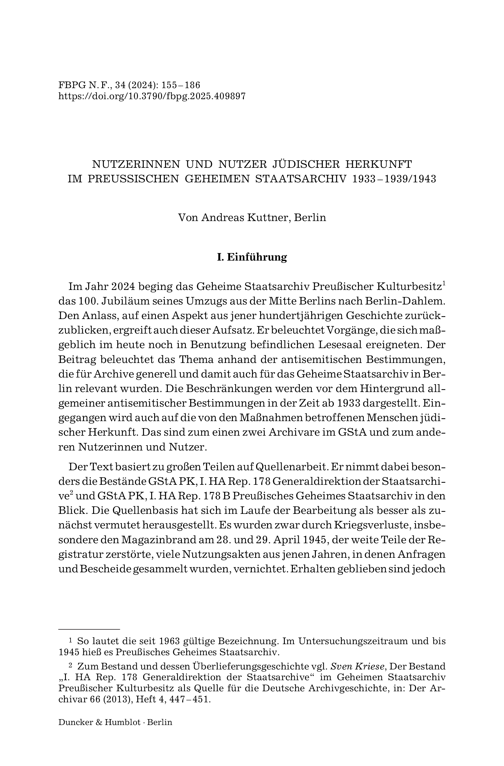 Forschungen zur Brandenburgischen und Preußischen Geschichte, Vol. 34 (2024), Iss. 1 : pp. 155–186 | First published online: October 01, 2025