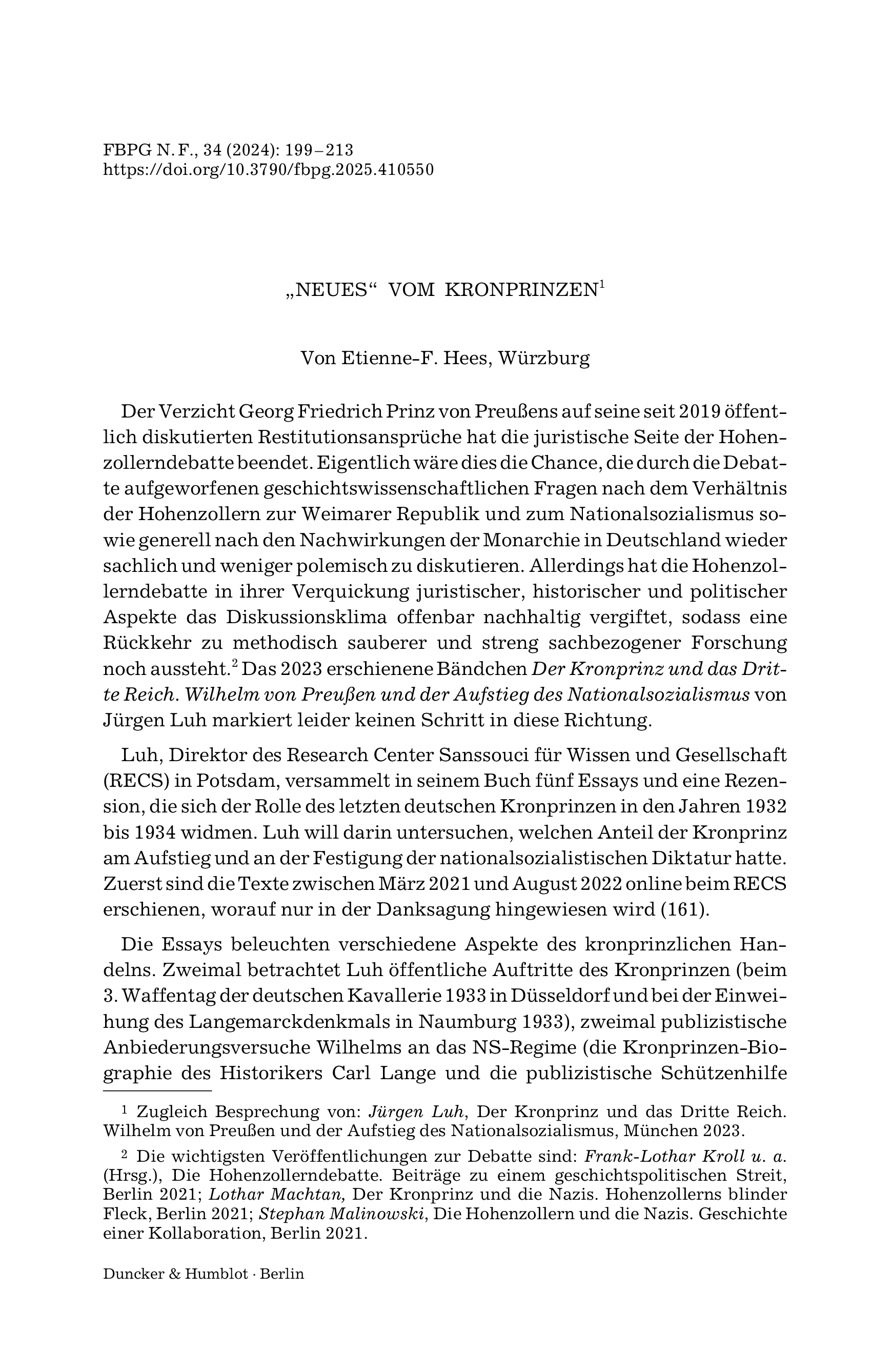Forschungen zur Brandenburgischen und Preußischen Geschichte, Vol. 34 (2024), Iss. 1 : pp. 199–214 | First published online: October 01, 2025