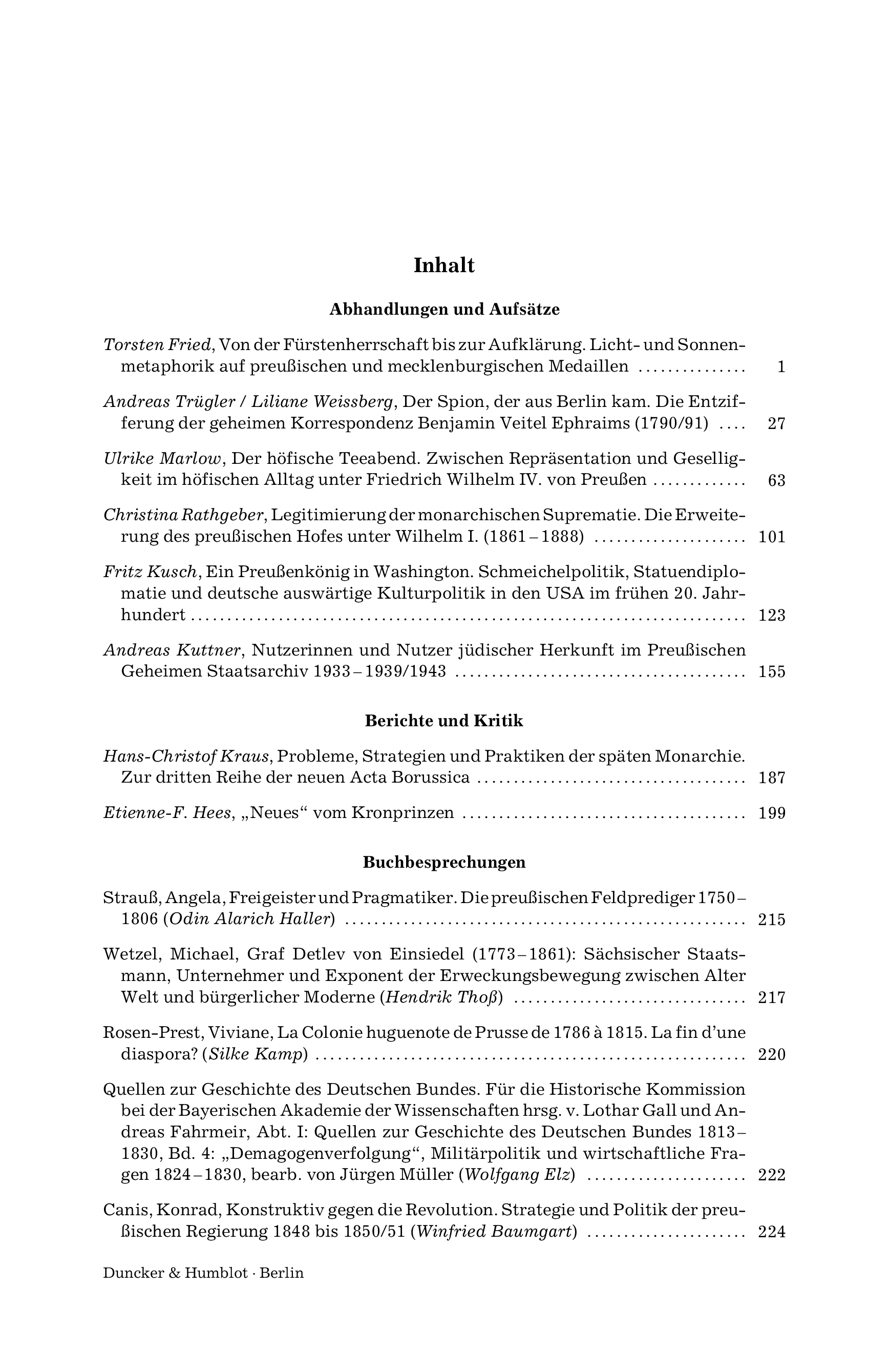 Forschungen zur Brandenburgischen und Preußischen Geschichte, Vol. 34 (2024), Iss. 1 : pp. 3–4 | First published online: October 01, 2025