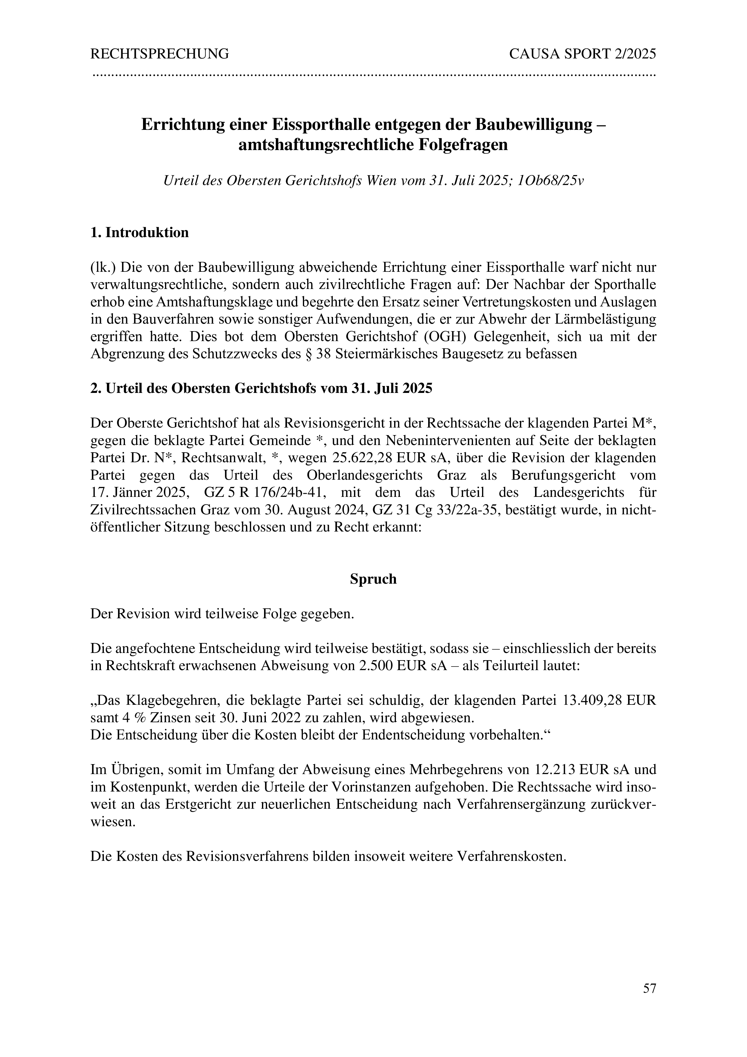 Errichtung einer Eissporthalle entgegen der Baubewilligung - amtshaftungsrechtliche Folgefragen