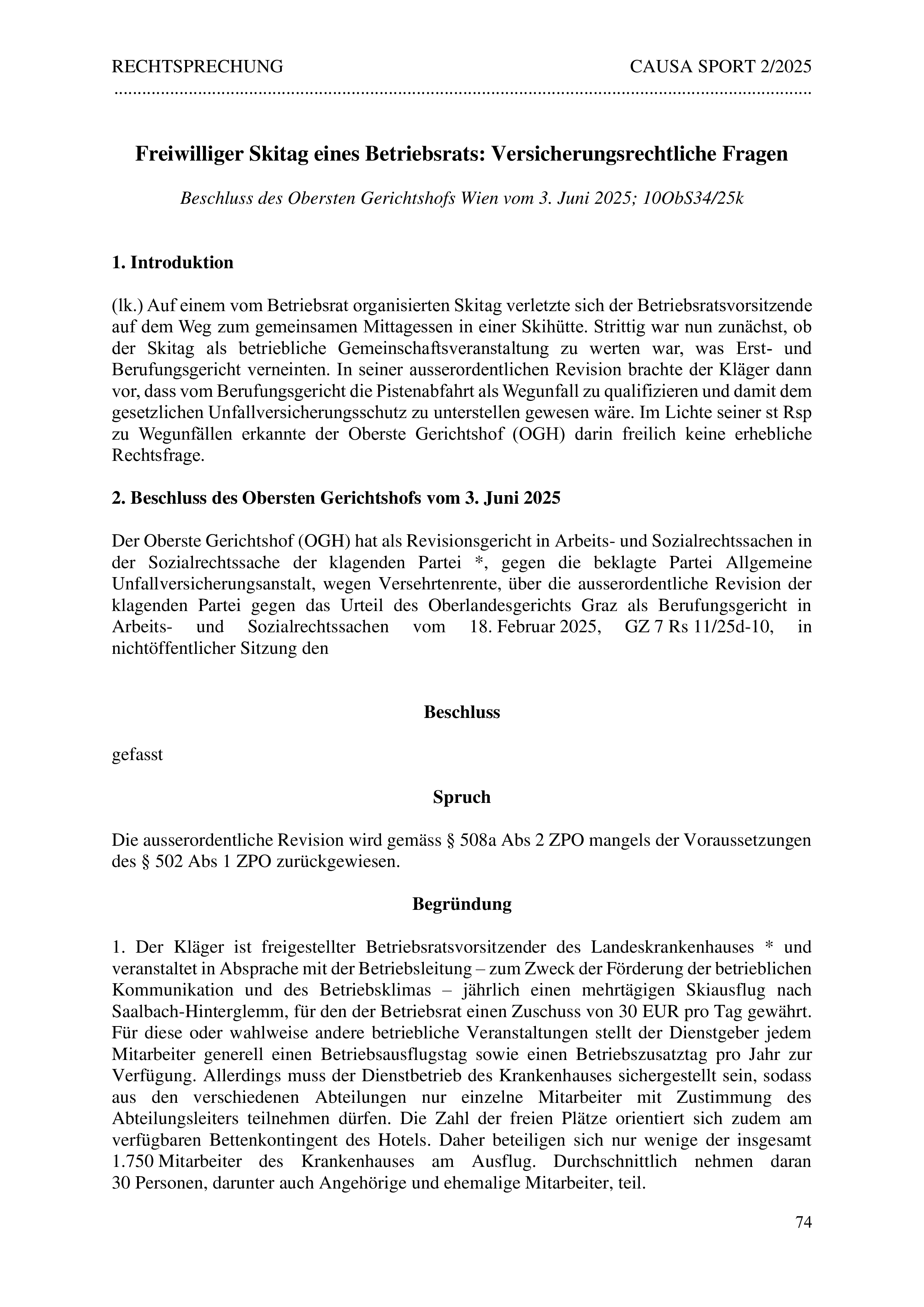 Freiwilliger Skitag eines Betriebsrats: Versicherungsrechtliche Fragen