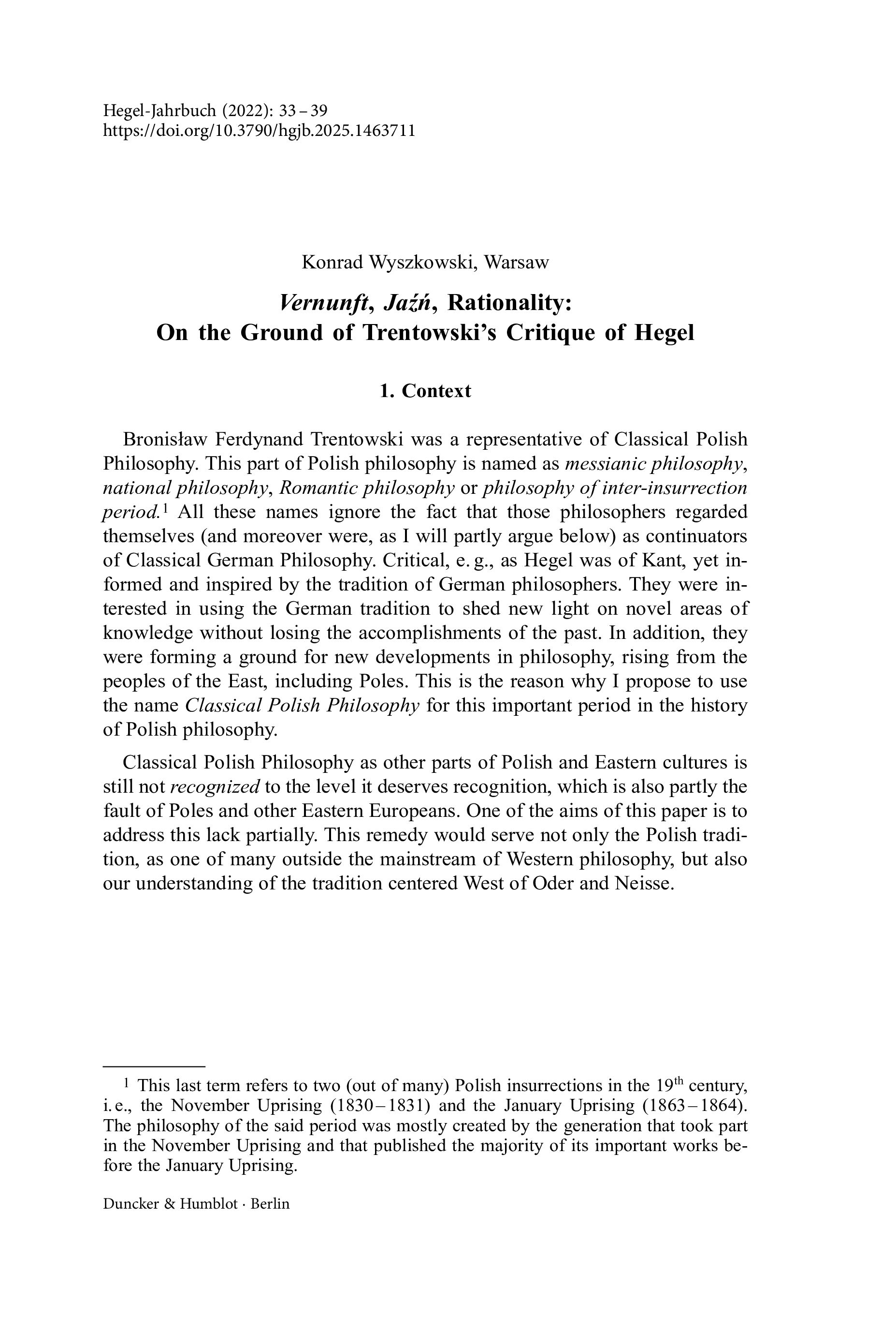 Vernunft, Jaźń, Rationality: On the Ground of Trentowski’s Critique of Hegel