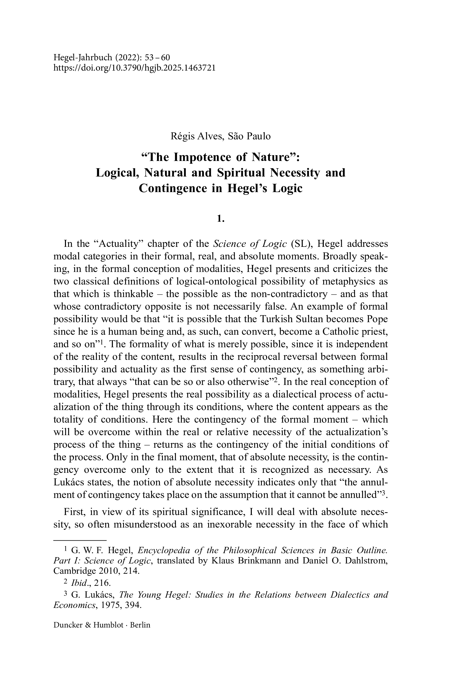 Hegel Jahrbuch, Vol. 2022 (2022), Iss. 1 : pp. 53–60 | First published online: November 14, 2025