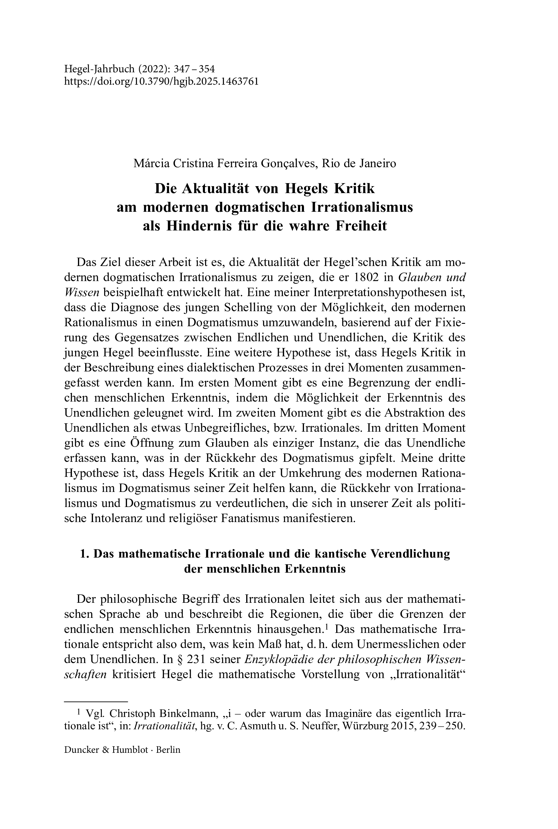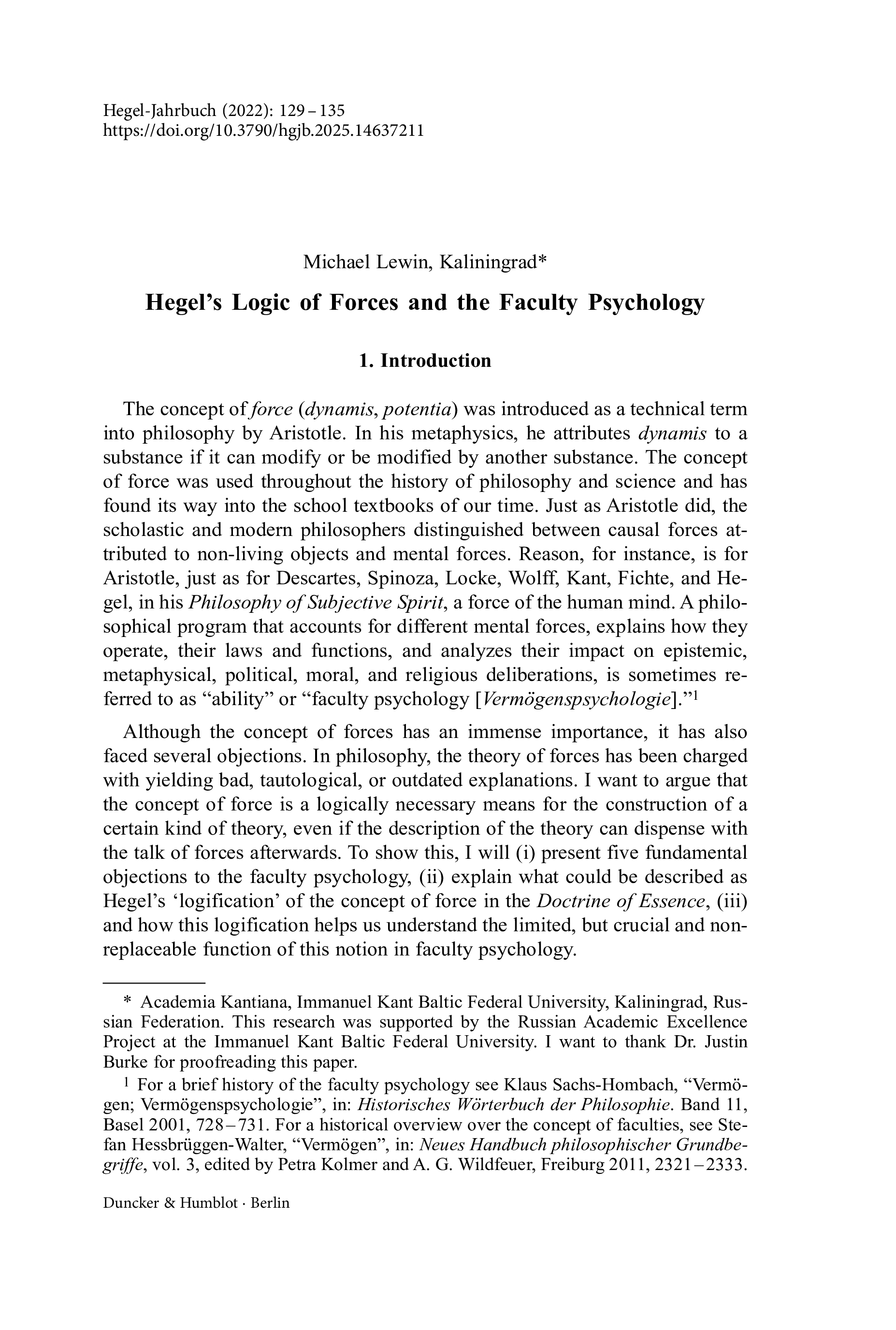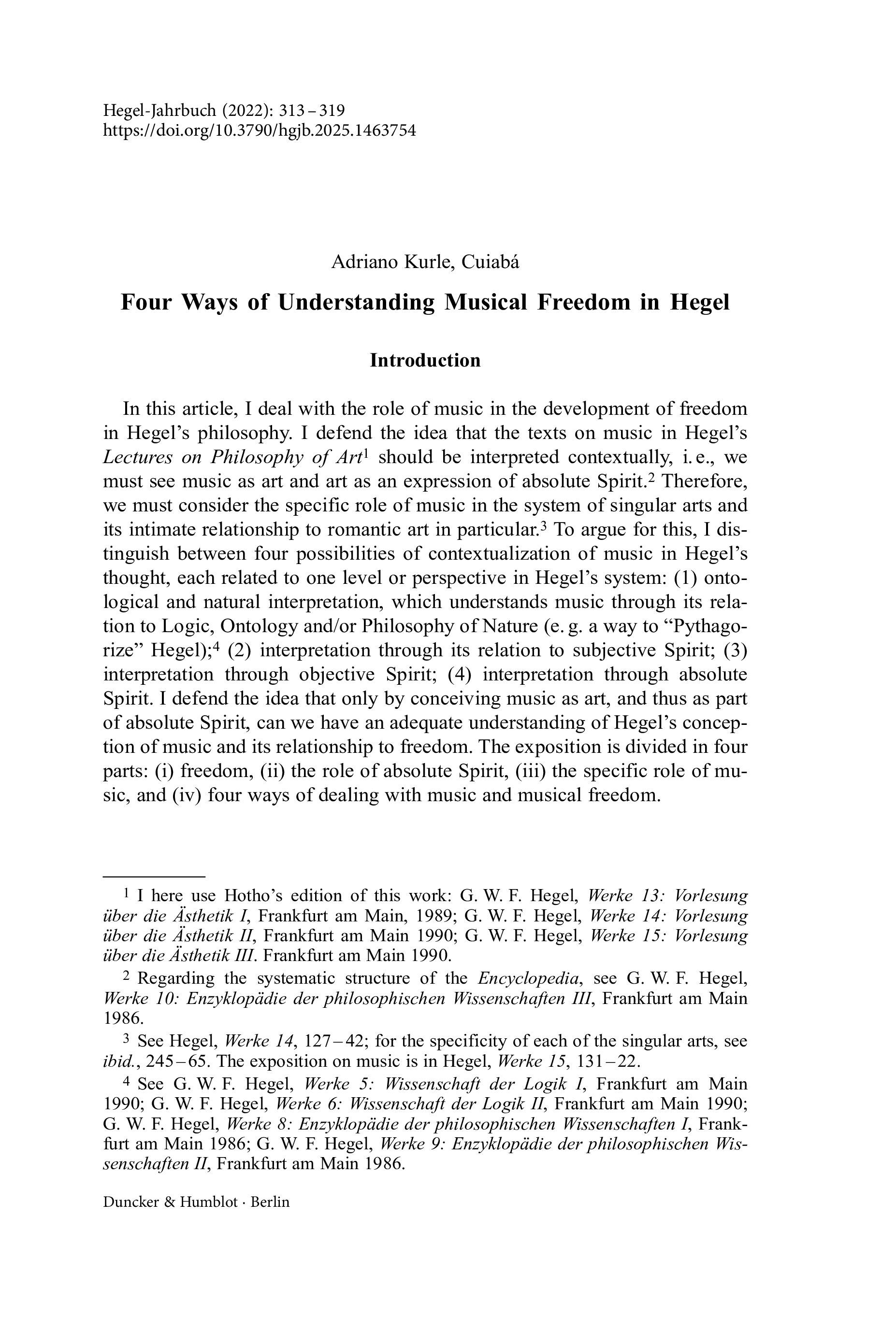 Hegel Jahrbuch, Vol. 2022 (2022), Iss. 1 : pp. 33–39 | First published online: November 14, 2025
