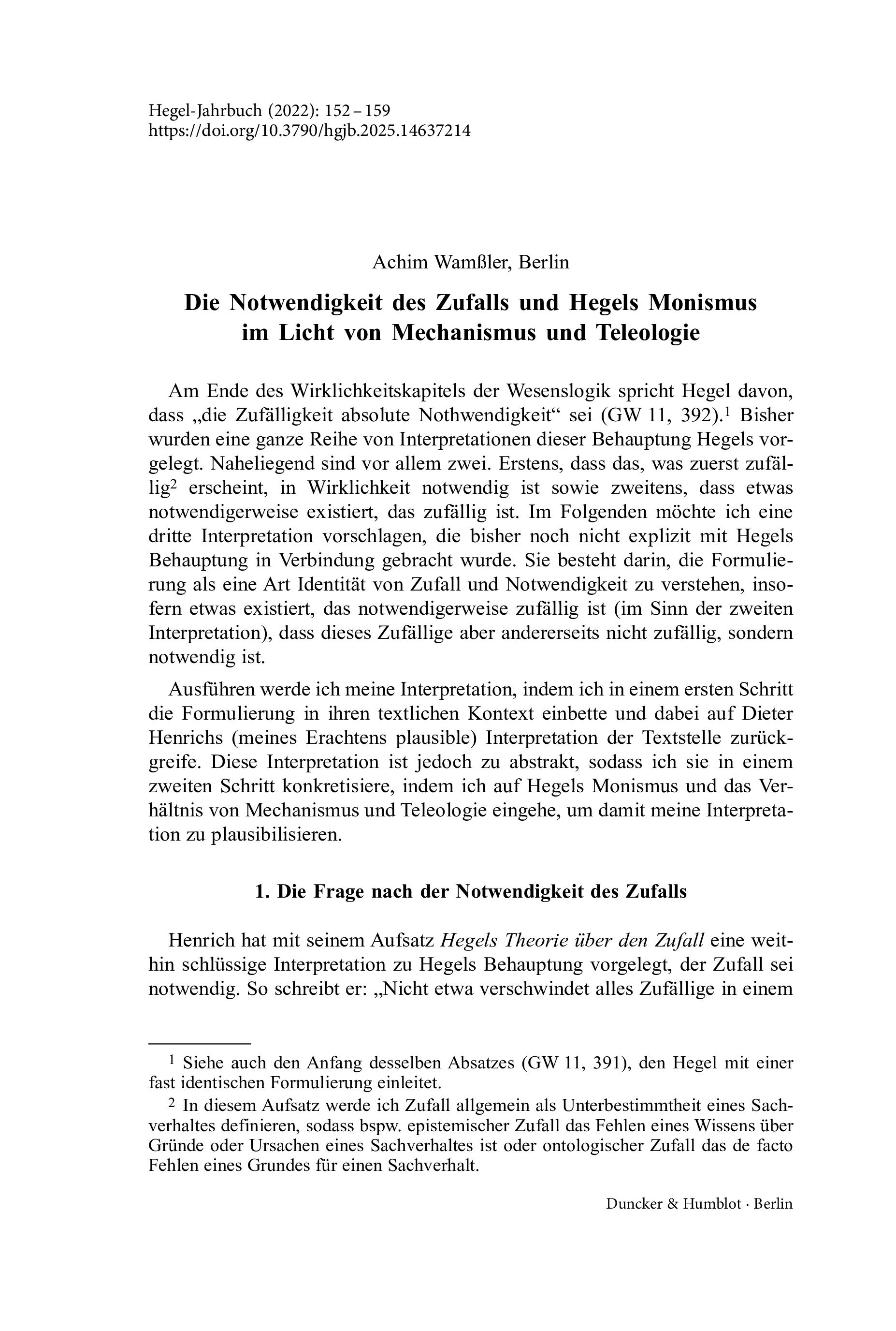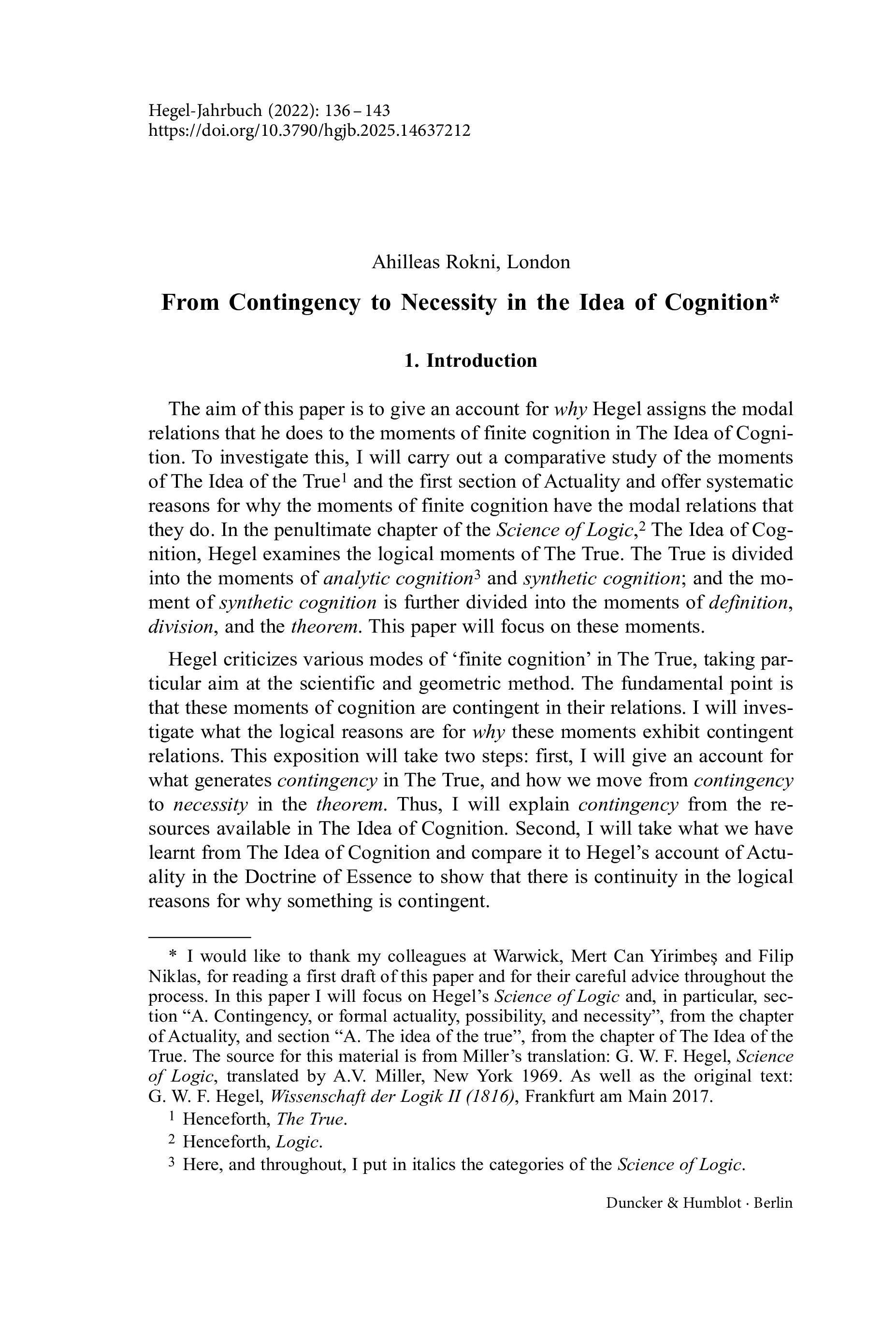 Hegel Jahrbuch, Vol. 2022 (2022), Iss. 1 : pp. 11–30 | First published online: November 14, 2025