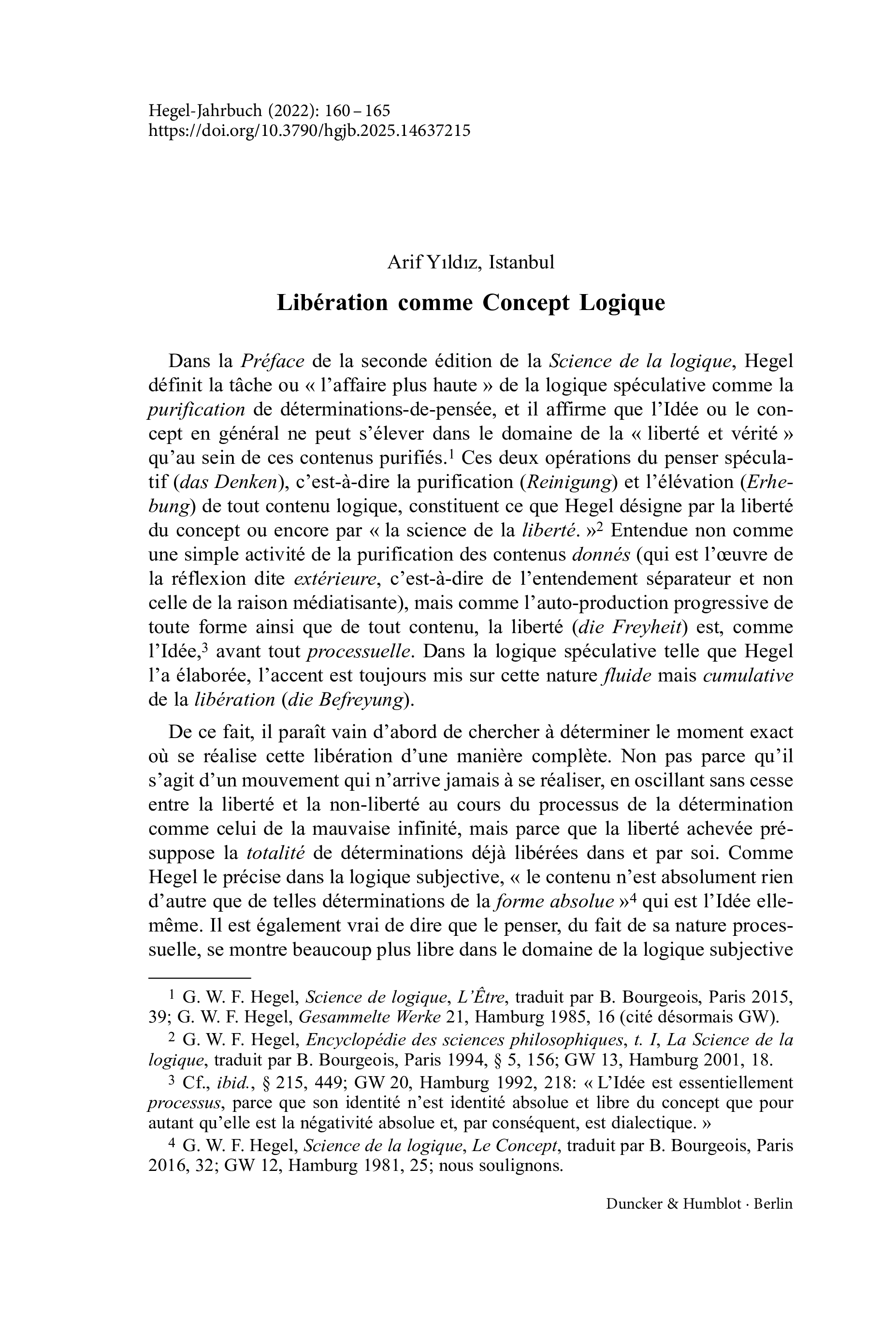 Hegel Jahrbuch, Vol. 2022 (2022), Iss. 1 : pp. 160–165 | First published online: November 14, 2025
