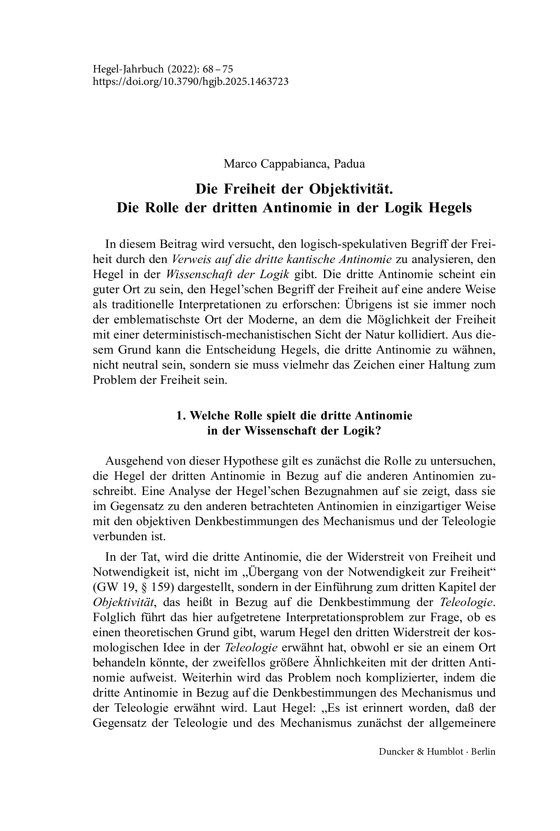 Hegel Jahrbuch, Vol. 2022 (2022), Iss. 1 : pp. 68–75 | First published online: November 14, 2025
