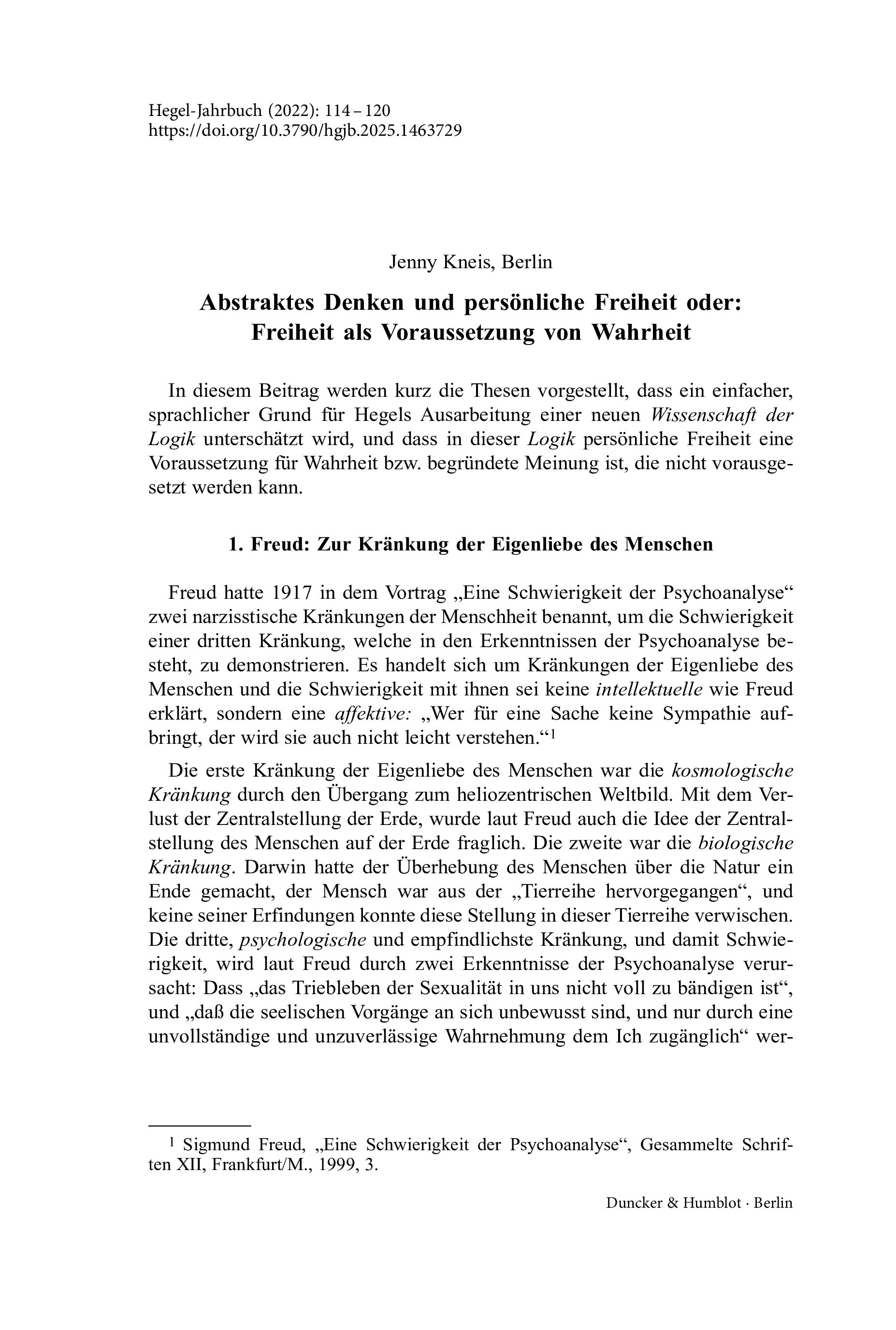 Hegel Jahrbuch, Vol. 2022 (2022), Iss. 1 : pp. 114–120 | First published online: November 14, 2025