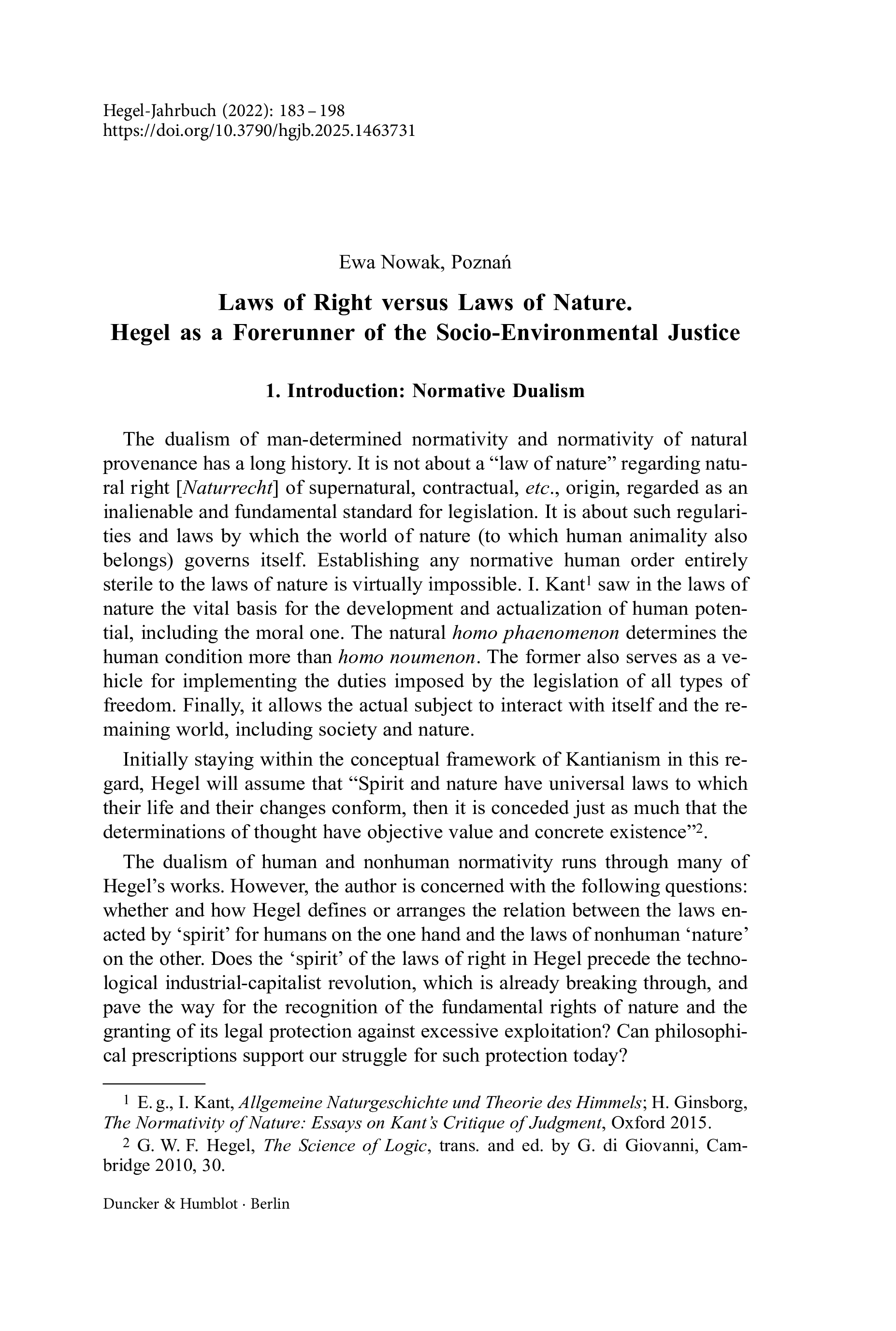 Hegel Jahrbuch, Vol. 2022 (2022), Iss. 1 : pp. 183–198 | First published online: November 14, 2025