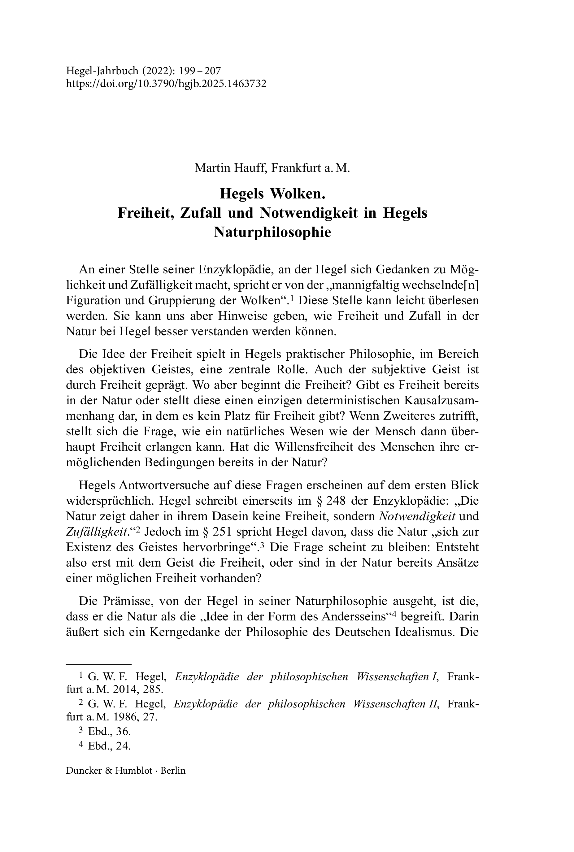 Hegel Jahrbuch, Vol. 2022 (2022), Iss. 1 : pp. 199–207 | First published online: November 14, 2025
