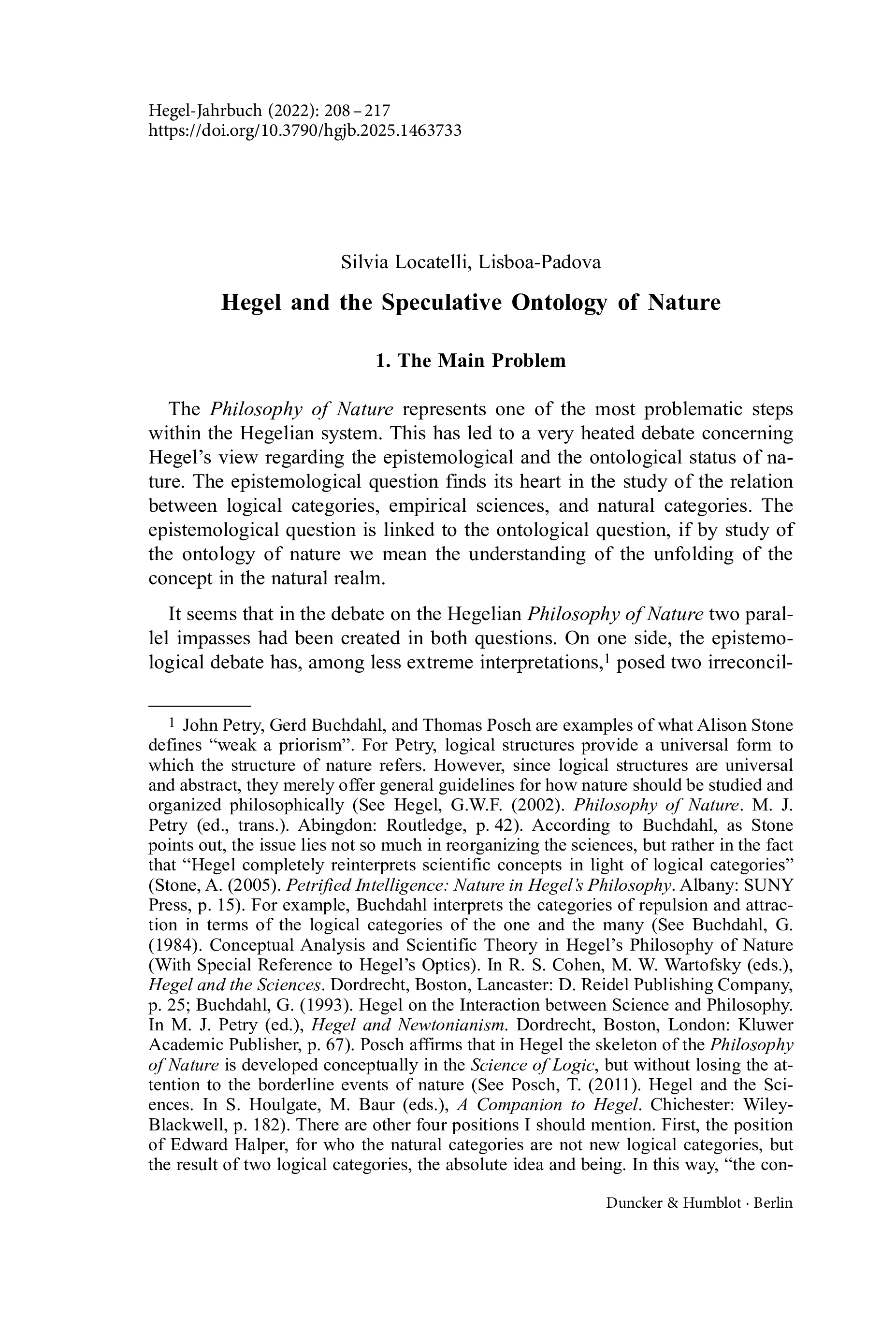 Hegel Jahrbuch, Vol. 2022 (2022), Iss. 1 : pp. 208–217 | First published online: November 14, 2025