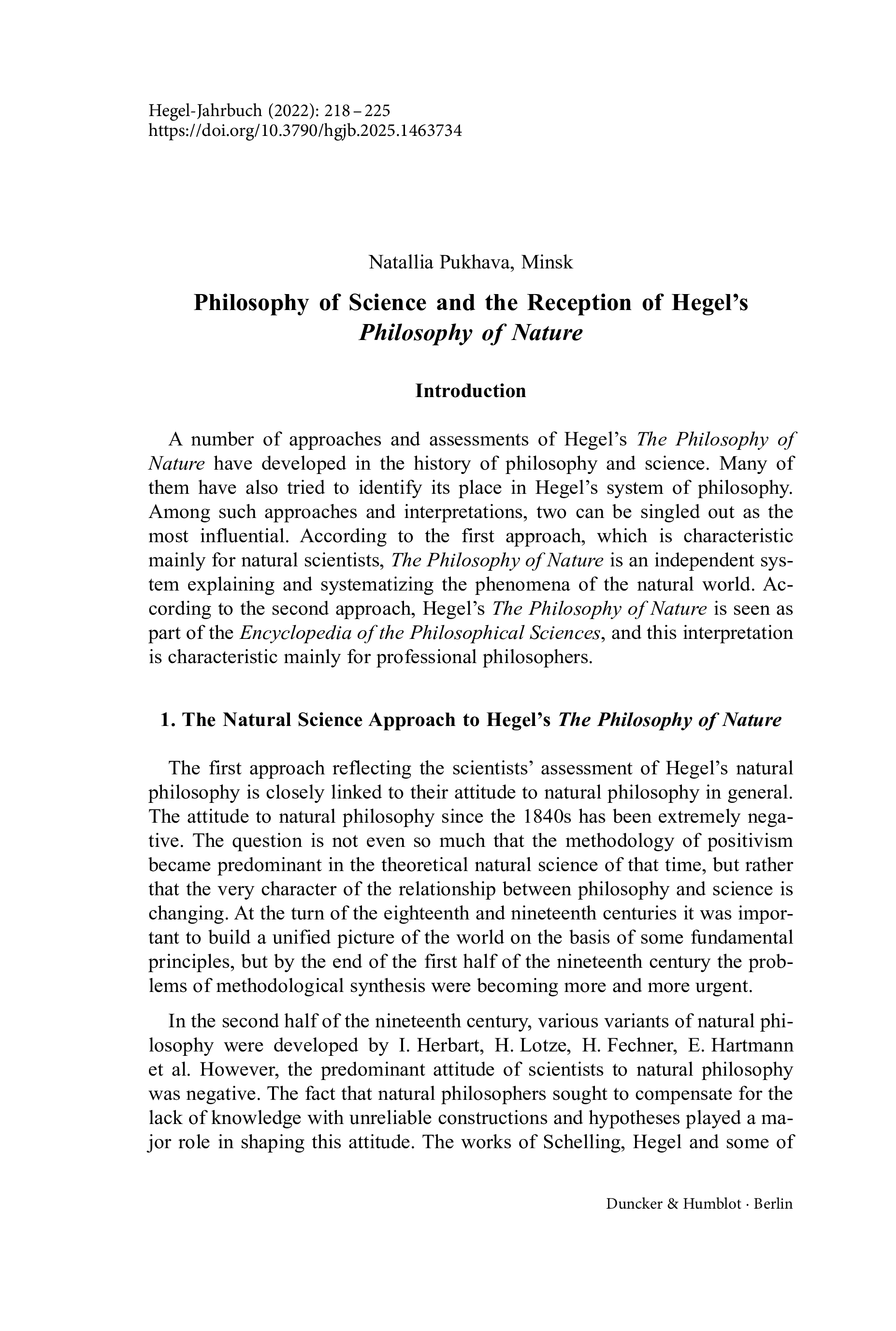 Philosophy of Science and the Reception of Hegel’s Philosophy of Nature