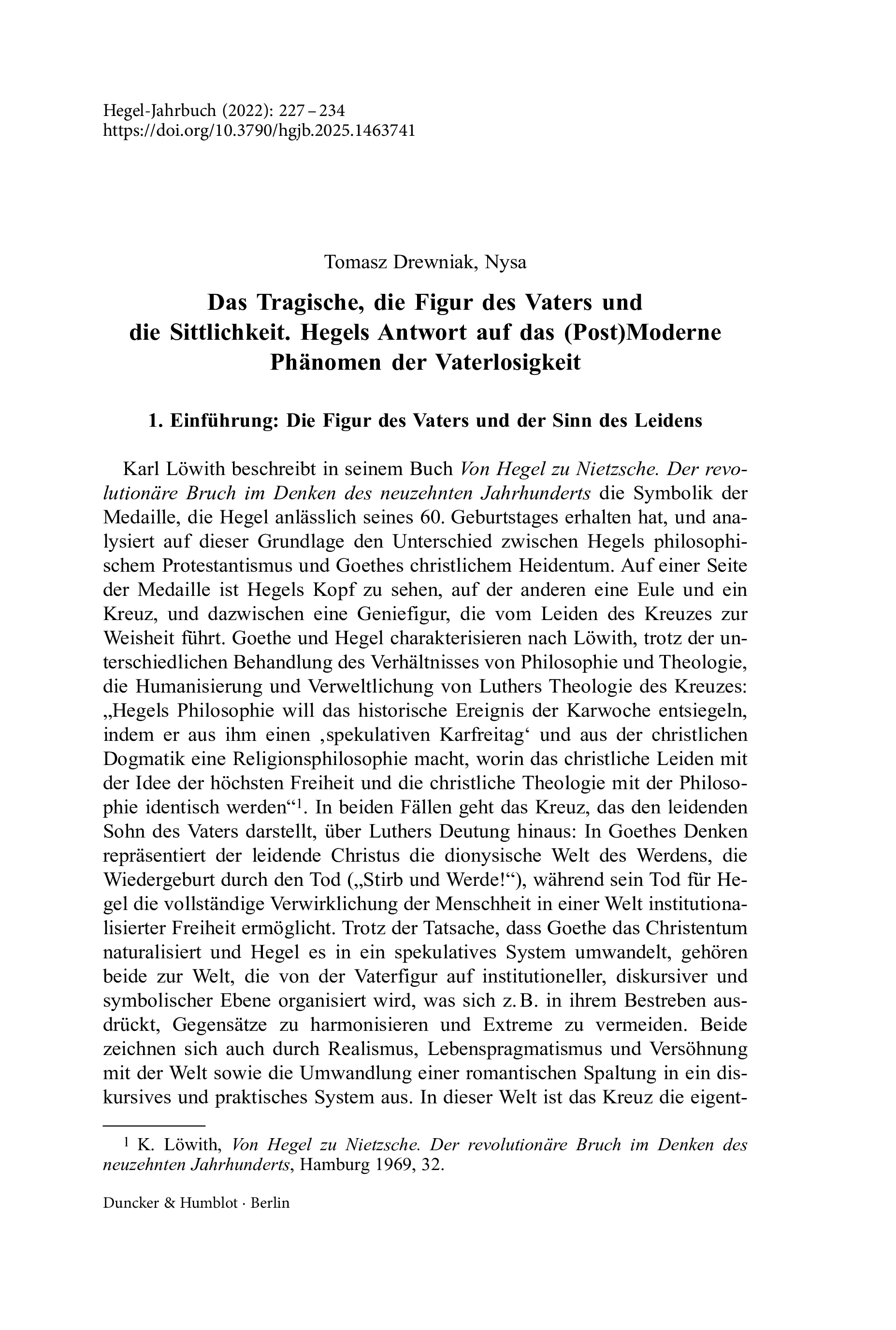 Hegel Jahrbuch, Vol. 2022 (2022), Iss. 1 : pp. 227–234 | First published online: November 14, 2025